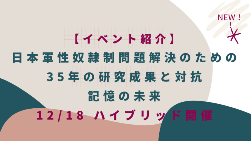 【イベント紹介】日本軍性奴隷制問題解決のための35年の研究成果と対抗 記憶の未来